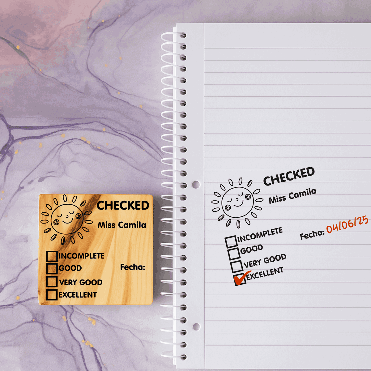 Envíanos un mail a skabe.sellos@gmail.com con el nombre que querés que figure en el sello (Por ejemplo: Miss. Nati)