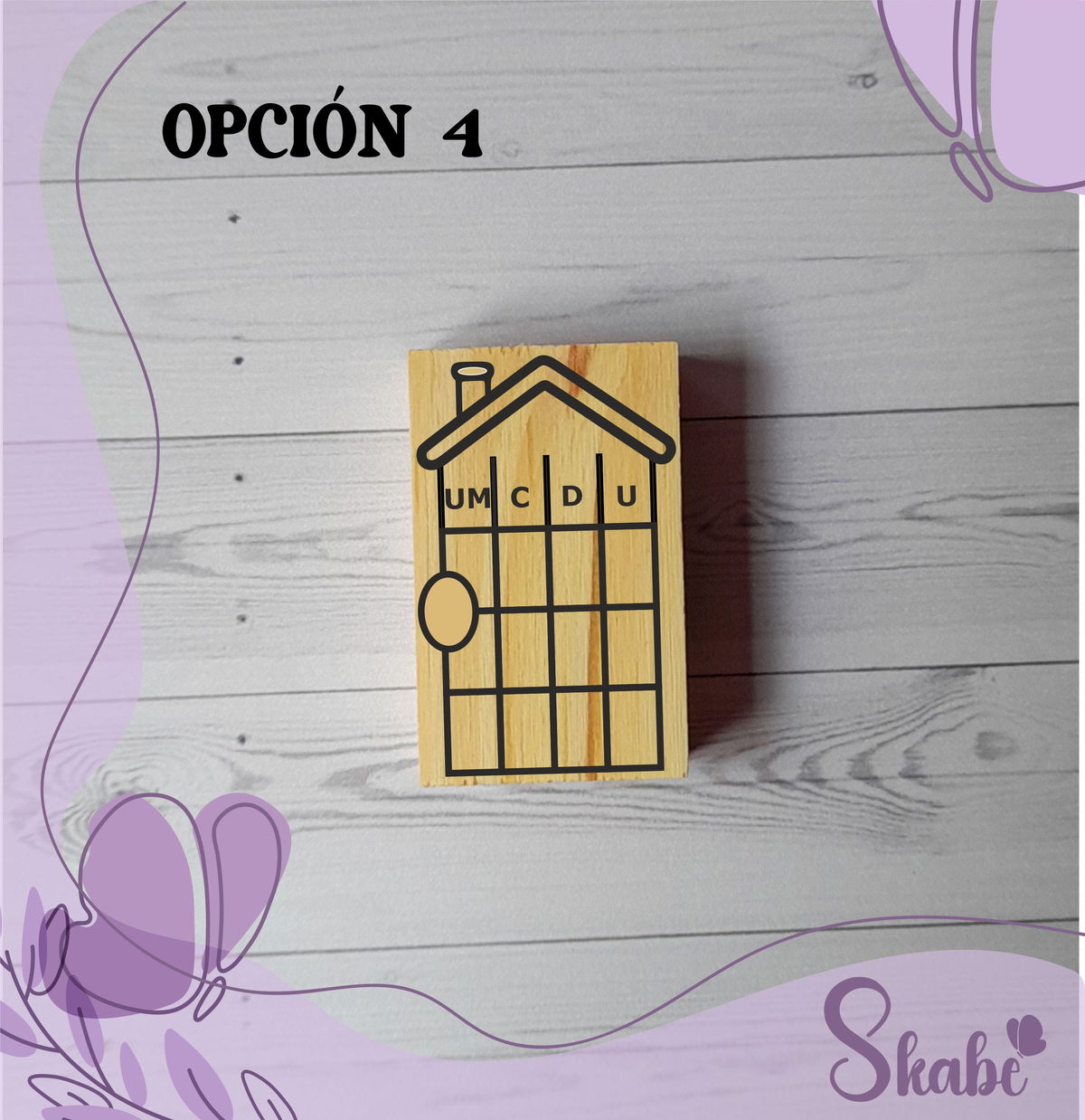 • Sello de goma con base de madera