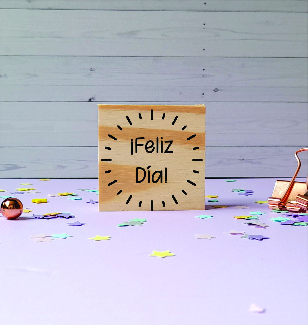 - Sello de goma con base de madera
