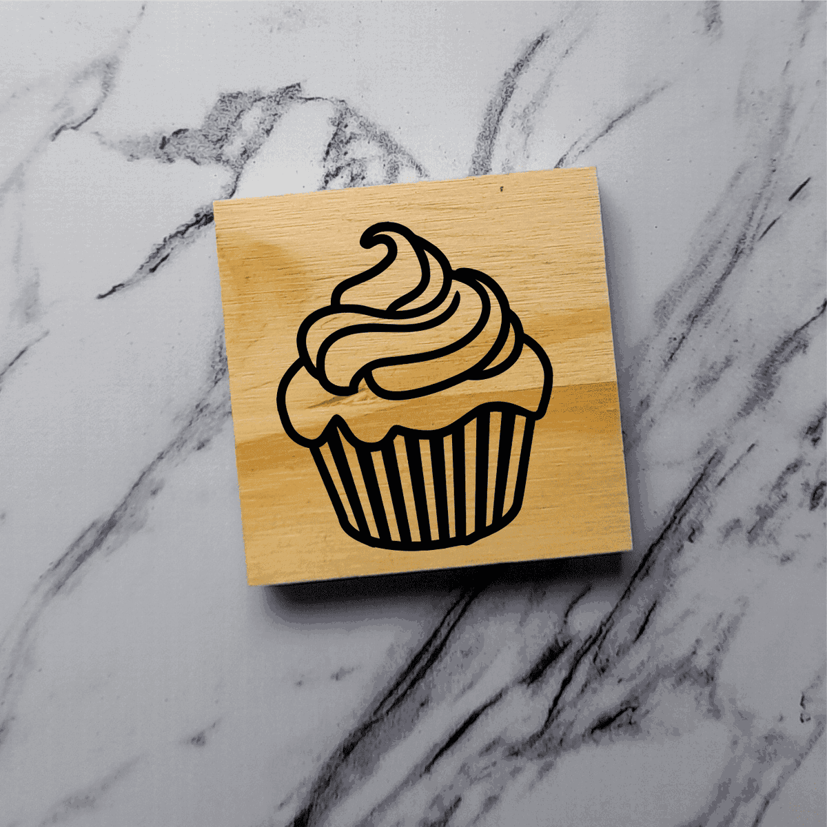 - Sello de goma con base de madera