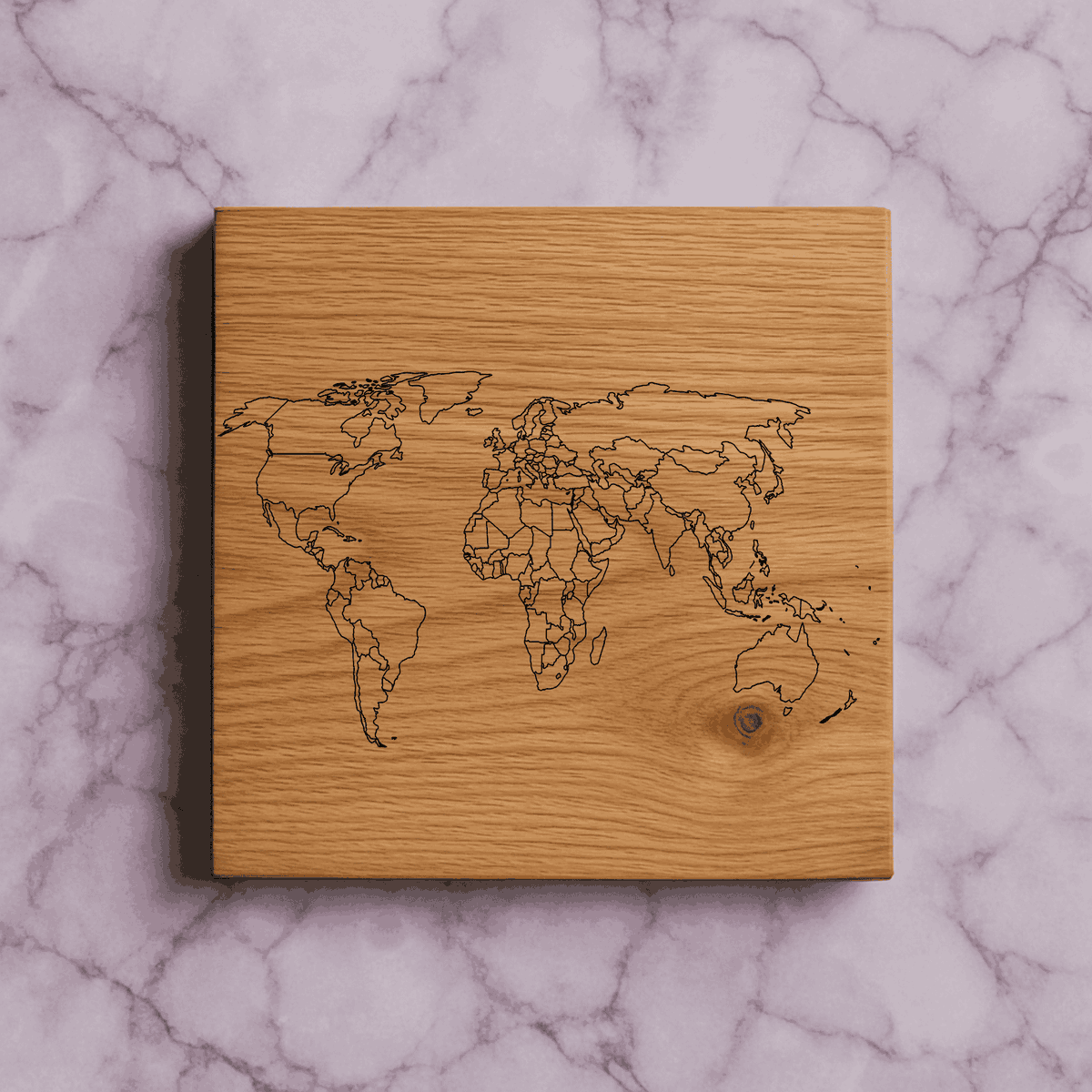 Ideal para los amantes de los viajes, la geografía o los proyectos creativos con un toque global. Este sello de goma montado sobre base de madera natural presenta un diseño detallado del mapa mundial, perfecto para decorar cuadernos, packaging, papelería artesanal, bullet journals, álbumes de viaje y más.