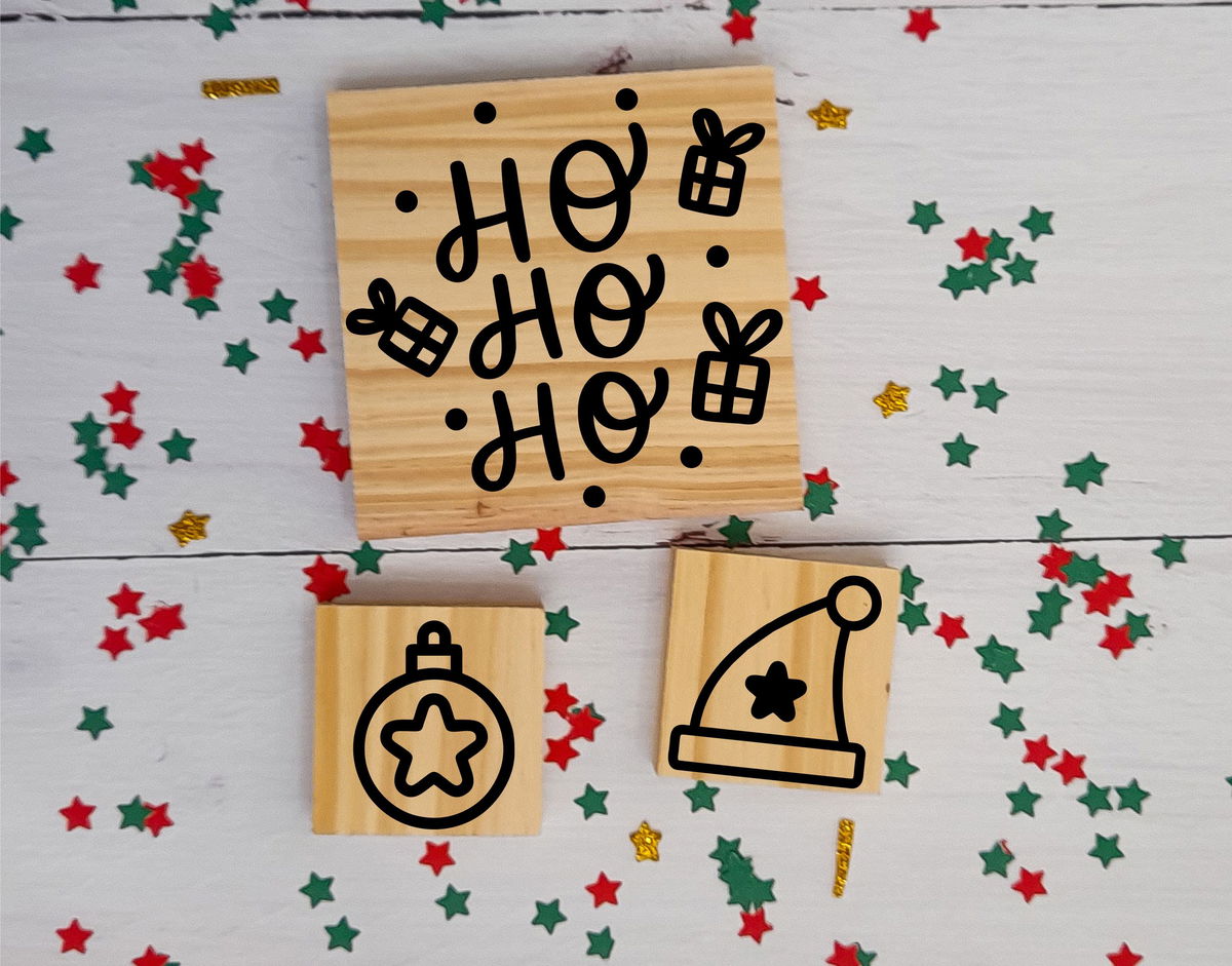 - 2 sellos 3x3cm (arbolito y adorno estrella)