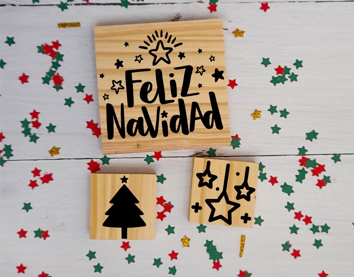 • 2 sellos 3x3cm (arbolito y adorno estrella)