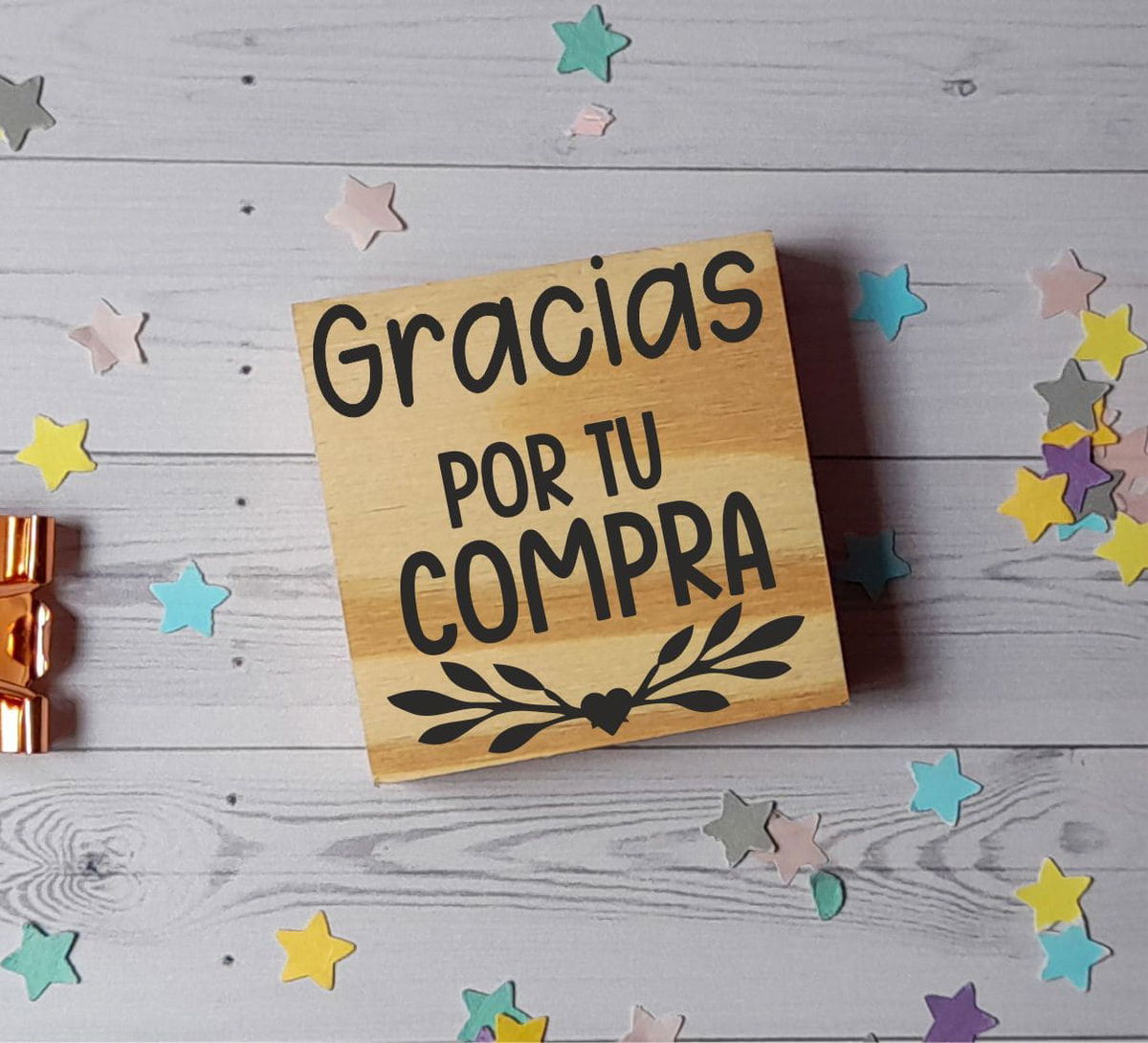 - Sello de goma con base de madera